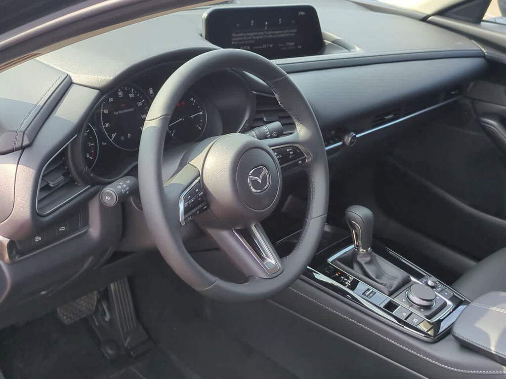 4-Wheel Disc Brakes, 6 Speakers, ABS brakes, Air Conditioning, Alloy wheels, AM/FM radio, AppLink/Apple CarPlay and Android Auto, Auto High-beam Headlights, Automatic temperature control, Black Lug Nuts & Black Wheel Locks, Brake assist, Bumpers: body-color, Cargo Cover, Compass, Delay-off headlights, Driver door bin, Driver vanity mirror, Dual front impact airbags, Dual front side impact airbags, Electronic Stability Control, Emergency communication system: Mazda Connected Services (3-year trial subscription included), Exterior Parking Camera Rear, Front anti-roll bar, Front Bucket Seats, Front Center Armrest, Front dual zone A/C, Front reading lights, Front wheel independent suspension, Fully automatic headlights, Heated door mirrors, High Wall All-Weather Floor Mats, Illuminated entry, Knee airbag, Leather Shift Knob, Leather steering wheel, Leatherette Seat Trim, Low tire pressure warning, MAZDA CONNECT Infotainment System, Occupant sensing airbag, Outside temperature display, Overhead airbag, Overhead console, Panic alarm, Passenger door bin, Passenger vanity mirror, Power door mirrors, Power steering, Power windows, Radio data system, Radio: AM/FM Audio System, Rain sensing wipers, Rear seat center armrest, Rear side impact airbag, Rear window defroster, Rear window wiper, Remote keyless entry, Speed control, Speed-sensing steering, Split folding rear seat, Spoiler, Steering wheel mounted audio controls, Tachometer, Telescoping steering wheel, Tilt steering wheel, Traction control, Trip computer, Turn signal indicator mirrors, Variably intermittent wipers, and Wheels: 18 x 7J Aluminum Alloy.