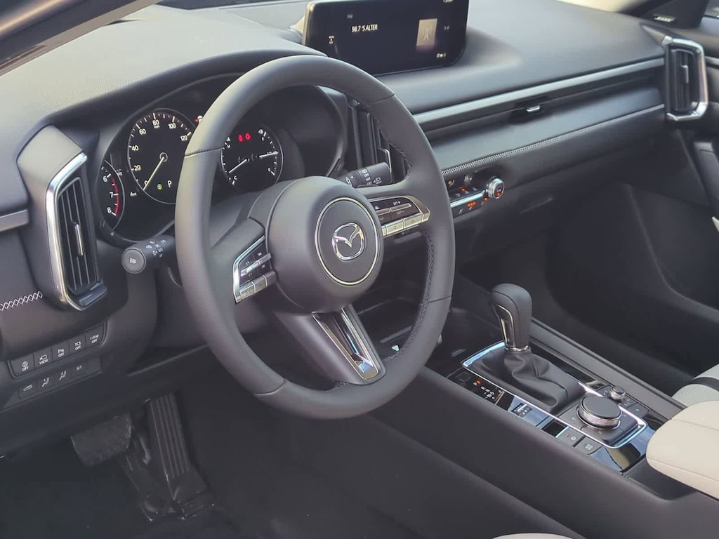 12 Speakers, 4-Wheel Disc Brakes, ABS brakes, Air Conditioning, Alloy wheels, AM/FM radio: SiriusXM, AppLink/Apple CarPlay and Android Auto, Auto High-beam Headlights, Auto-dimming door mirrors, Auto-dimming Rear-View mirror, Automatic temperature control, Brake assist, Bumpers: body-color, Compass, Cypress Green and White Interior, Delay-off headlights, Driver door bin, Driver vanity mirror, Dual front impact airbags, Dual front side impact airbags, Electronic Stability Control, Emergency communication system: MAZDA CONNECT, Front anti-roll bar, Front Bucket Seats, Front Center Armrest, Front dual zone A/C, Front reading lights, Front wheel independent suspension, Fully automatic headlights, Garage door transmitter: HomeLink, Heads-Up Display, Heated and Ventilated Front Seats with 3 Level Adjustment, Heated door mirrors, Heated front seats, Heated rear seats, Heated steering wheel, Illuminated entry, Knee airbag, Leather Seat Trim, Leather Shift Knob, Leather steering wheel, Low tire pressure warning, Memory seat, Navigation system: MAZDA CONNECT, Occupant sensing airbag, Outside temperature display, Overhead airbag, Overhead console, Panic alarm, Passenger door bin, Passenger vanity mirror, Power door mirrors, Power driver seat, Power Liftgate, Power moonroof, Power passenger seat, Power steering, Power windows, Radio data system, Radio: AM/FM/HD Bose 12-Speaker Audio Sound System and Navigation, Rain sensing wipers, Rear seat center armrest, Rear window defroster, Rear window wiper, Remote keyless entry, Speed control, Speed-sensing steering, Split folding rear seat, Spoiler, Steering wheel mounted audio controls, Tachometer, Telescoping steering wheel, Tilt steering wheel, Traction control, Trailer Hitch with 7-Pin Harness, Trip computer, Turn signal indicator mirrors, Variably intermittent wipers, Ventilated front seats, and Wheels: 20 x 8J Aluminum Alloy Black Metallic with Machining Cut. Price includes: $1500 - Customer Cash. Exp. 03/31/2026
