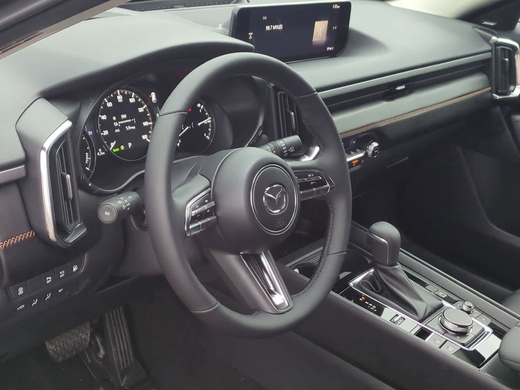 Weather Package, 2.5L 4-Cylinder, 12 Speakers, 4-Wheel Disc Brakes, ABS brakes, Air Conditioning, Alloy wheels, AM/FM radio: SiriusXM, AppLink/Apple CarPlay and Android Auto, Auto High-beam Headlights, Auto-dimming Rear-View mirror, Automatic temperature control, Brake assist, Bumpers: body-color, Delay-off headlights, Driver door bin, Driver vanity mirror, Dual front impact airbags, Dual front side impact airbags, Electronic Stability Control, Emergency communication system: MAZDA CONNECT, Exterior Parking Camera Rear, Front anti-roll bar, Front Bucket Seats, Front Center Armrest, Front dual zone A/C, Front reading lights, Front wheel independent suspension, Fully automatic headlights, Garage door transmitter: HomeLink, Heads-Up Display, Heated and Ventilated Front Seats with 3 Level Adjustment, Heated door mirrors, Heated front seats, Heated rear seats, Heated steering wheel, Illuminated entry, Knee airbag, Leather Seat Trim, Leather Shift Knob, Leather steering wheel, Low tire pressure warning, Machine Gray Metallic Paint Charge, Memory seat, Occupant sensing airbag, Outside temperature display, Overhead airbag, Overhead console, Panic alarm, Passenger door bin, Passenger vanity mirror, Power door mirrors, Power driver seat, Power Liftgate, Power moonroof, Power passenger seat, Power steering, Power windows, Radio data system, Radio: AM/FM/HD Bose 12-Speaker Audio Sound System, Rain sensing wipers, Rear seat center armrest, Rear window defroster, Rear window wiper, Remote keyless entry, Speed control, Speed-sensing steering, Split folding rear seat, Spoiler, Steering wheel mounted audio controls, Tachometer, Telescoping steering wheel, Tilt steering wheel, Traction control, Trip computer, Turn signal indicator mirrors, Variably intermittent wipers, Ventilated front seats, and Wheels: 19 x 7.5J Aluminum Alloy Black Metallic with Machine Cut. Price includes: $2500 - Customer Cash. Exp. 03/31/2026