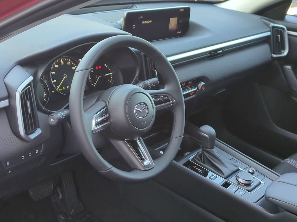 Cargo Package (Cargo Blocks), 2.5L 4-Cylinder, 4-Wheel Disc Brakes, 8 Speakers, ABS brakes, Air Conditioning, Alloy wheels, AM/FM radio, AppLink/Apple CarPlay and Android Auto, Auto High-beam Headlights, Automatic temperature control, Brake assist, Bumpers: body-color, Delay-off headlights, Driver door bin, Driver vanity mirror, Dual front impact airbags, Dual front side impact airbags, Electronic Stability Control, Emergency communication system: MAZDA CONNECT, Exterior Parking Camera Rear, Front anti-roll bar, Front Bucket Seats, Front Center Armrest, Front dual zone A/C, Front reading lights, Front wheel independent suspension, Fully automatic headlights, Half Leatherette Seat Trim, Heated door mirrors, Heated front seats, Heated Front Seats w/3 Level Adjustment, Illuminated entry, Knee airbag, Leather Shift Knob, Leather steering wheel, Low tire pressure warning, Occupant sensing airbag, Outside temperature display, Overhead airbag, Overhead console, Panic alarm, Passenger door bin, Passenger vanity mirror, Power door mirrors, Power driver seat, Power Liftgate, Power moonroof, Power steering, Power windows, Radio data system, Radio: AM/FM/HD 8-Speaker Audio Sound System, Rain sensing wipers, Rear seat center armrest, Rear window defroster, Rear window wiper, Remote keyless entry, Soul Red Crystal Metallic Paint Charge, Speed control, Speed-sensing steering, Split folding rear seat, Spoiler, Steering wheel mounted audio controls, Tachometer, Telescoping steering wheel, Tilt steering wheel, Traction control, Trip computer, Turn signal indicator mirrors, Variably intermittent wipers, and Wheels: 17 x 7J Aluminum Alloy Black Metallic Finish. Price includes: $2500 - Customer Cash. Exp. 04/30/2026