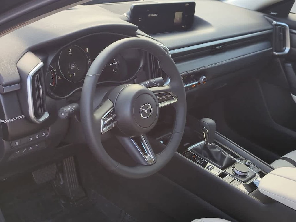 Accent Package, Weather Package, 12 Speakers, 4-Wheel Disc Brakes, ABS brakes, Air Conditioning, Alloy wheels, AM/FM radio: SiriusXM, AppLink/Apple CarPlay and Android Auto, Auto High-beam Headlights, Auto-dimming Rear-View mirror, Automatic temperature control, Brake assist, Bumpers: body-color, Delay-off headlights, Driver door bin, Driver vanity mirror, Dual front impact airbags, Dual front side impact airbags, Electronic Stability Control, Emergency communication system: MAZDA CONNECT, Exterior Parking Camera Rear, Front anti-roll bar, Front Bucket Seats, Front Center Armrest, Front dual zone A/C, Front reading lights, Front wheel independent suspension, Fully automatic headlights, Garage door transmitter: HomeLink, Heads-Up Display, Heated and Ventilated Front Seats with 3 Level Adjustment, Heated door mirrors, Heated front seats, Illuminated entry, Knee airbag, Leather Seat Trim, Leather Shift Knob, Leather steering wheel, Low tire pressure warning, Machine Gray Metallic and White Interior, Memory seat, Occupant sensing airbag, Outside temperature display, Overhead airbag, Overhead console, Panic alarm, Passenger door bin, Passenger vanity mirror, Power door mirrors, Power driver seat, Power Liftgate, Power moonroof, Power passenger seat, Power steering, Power windows, Radio data system, Radio: AM/FM/HD Bose 12-Speaker Audio Sound System, Rain sensing wipers, Rear seat center armrest, Rear window defroster, Rear window wiper, Remote keyless entry, Speed control, Speed-sensing steering, Split folding rear seat, Spoiler, Steering wheel mounted audio controls, Tachometer, Telescoping steering wheel, Tilt steering wheel, Traction control, Trip computer, Turn signal indicator mirrors, Variably intermittent wipers, Ventilated front seats, and Wheels: 20 x 8J Aluminum Alloy Black Metallic with Machining Cut.